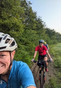 It probably took Susie and me about an hour and half to go up and down Stanley Gap and we hiked a good chunk of the climb. In some places I wasn’t sure how to get my bike up and over root sections. Monica rode ahead of us at the base of Green Mountain and we had dreams of her already in Cherry Log and making her way into the Cohuttas. Susie and I arrived at the Pink Pig some time before 5 p.m. and texted Monica some encouraging words. Turns out she got lost and ended up behind us somehow…so the gang was back together at Pink Pig, enjoying dinner together.