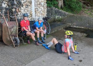 As we inched closer to Dry Creek, we ran into Daryl Fagan, a local cyclist I’d known for a while from Dalton days. He lived off Pocket Rd and came by to say hello. Not long after we took a much-needed break in the East Armuchee Creek (which is normally more like a raging river during The Snake Time Trial), up rolls Eric Henderson! He also came by to say hello and check on Rasch who had a pretty nasty wreck early on The Snake (ended up breaking ribs and fingers, etc.).